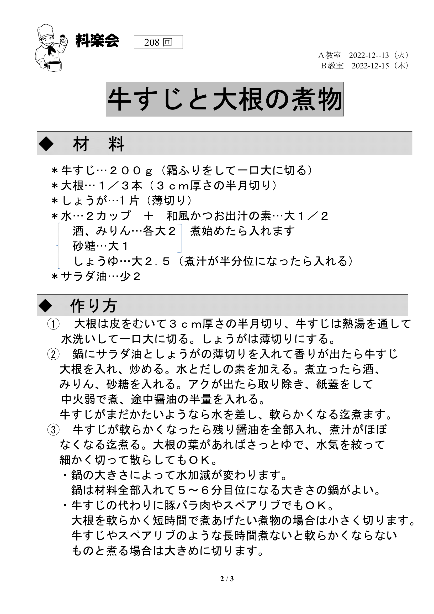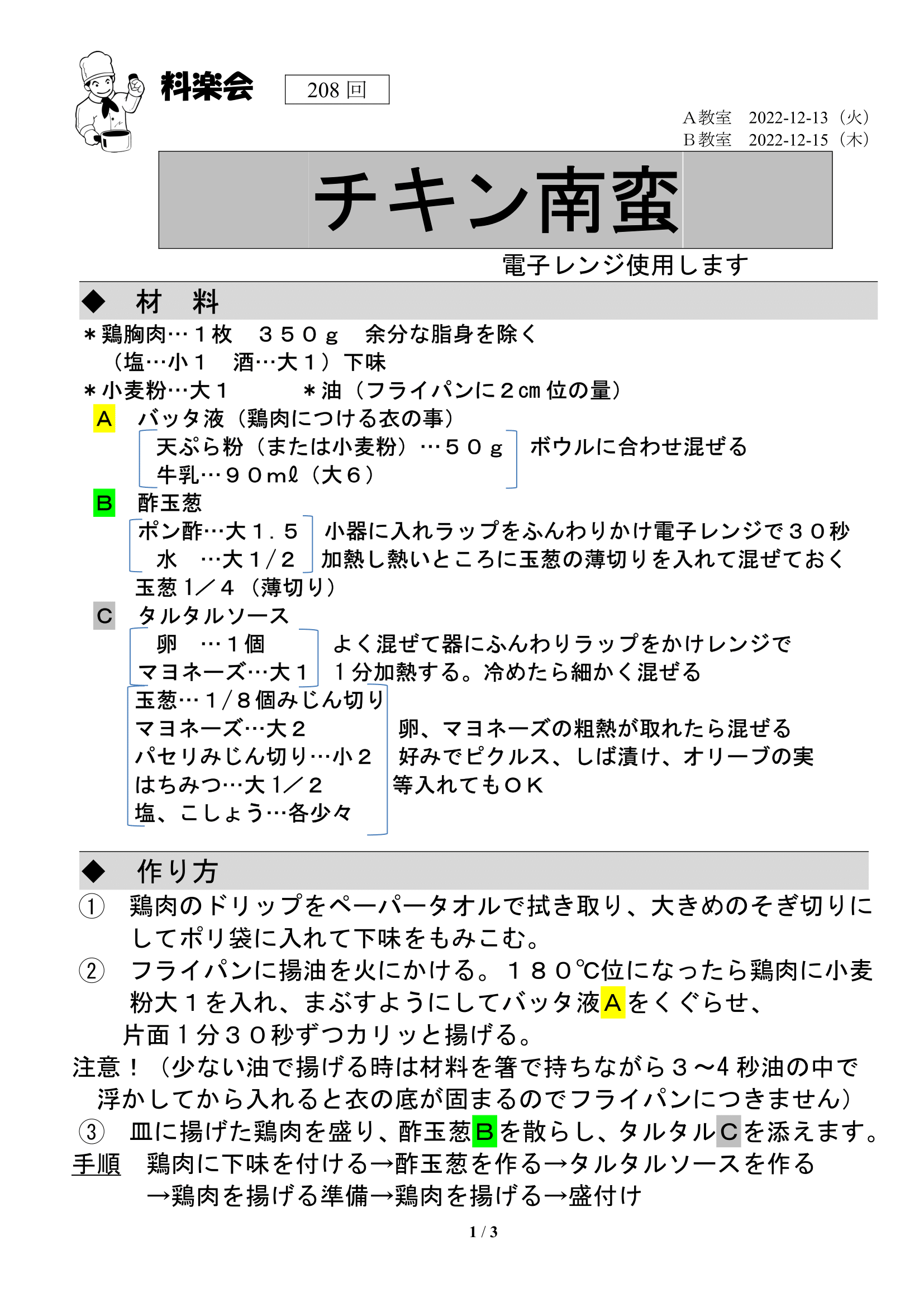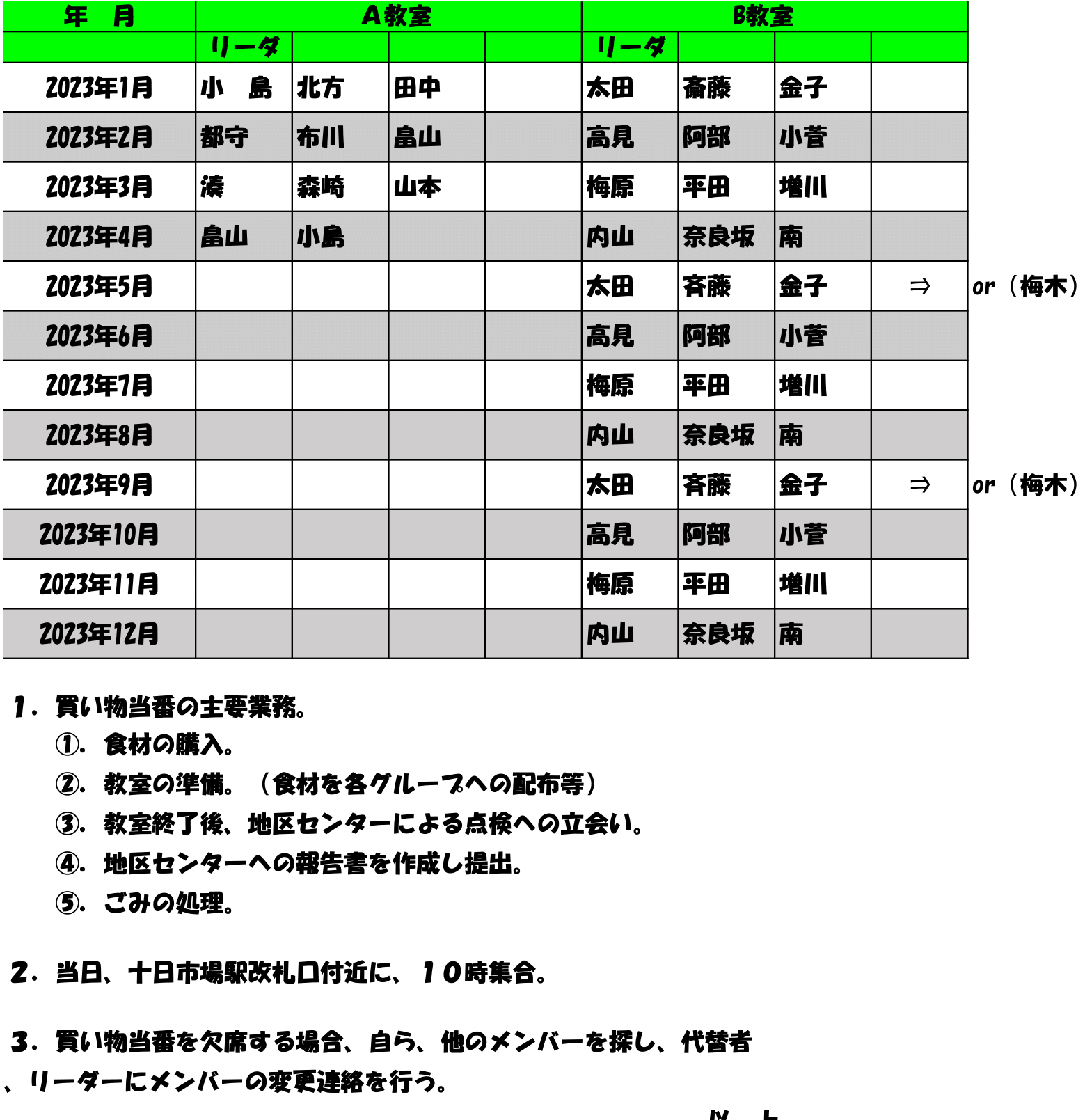 開催日は、月1回 A教室(第4火曜日) B教室(第4木曜日)です。