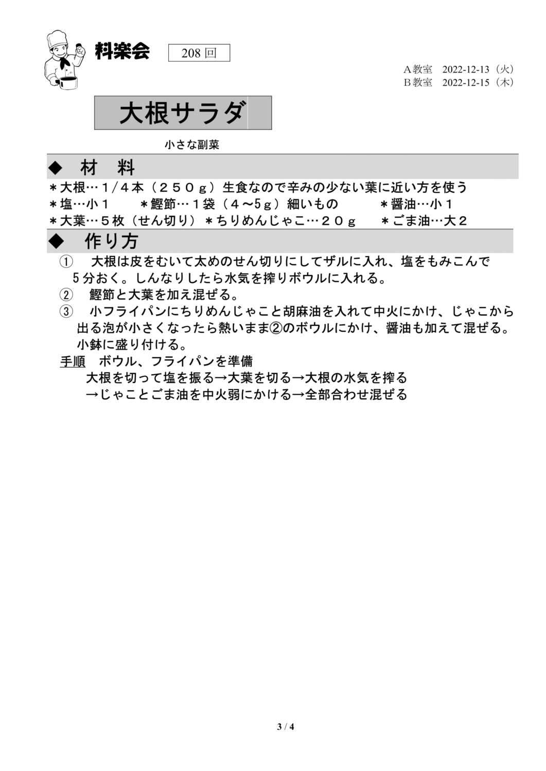 料楽会では、B教室(第4木曜日)の新規会員1名を、下記のとおり募集いたします。