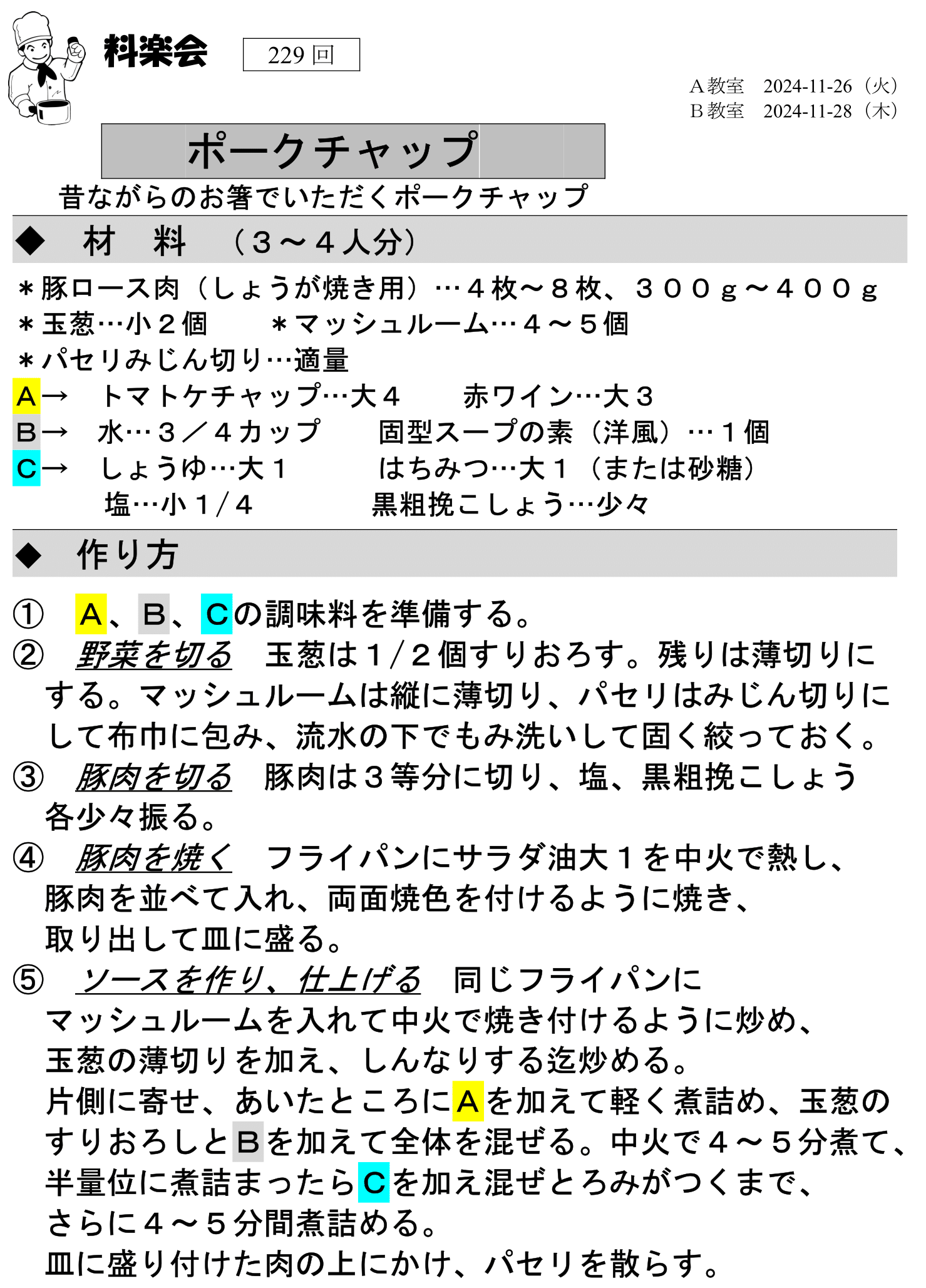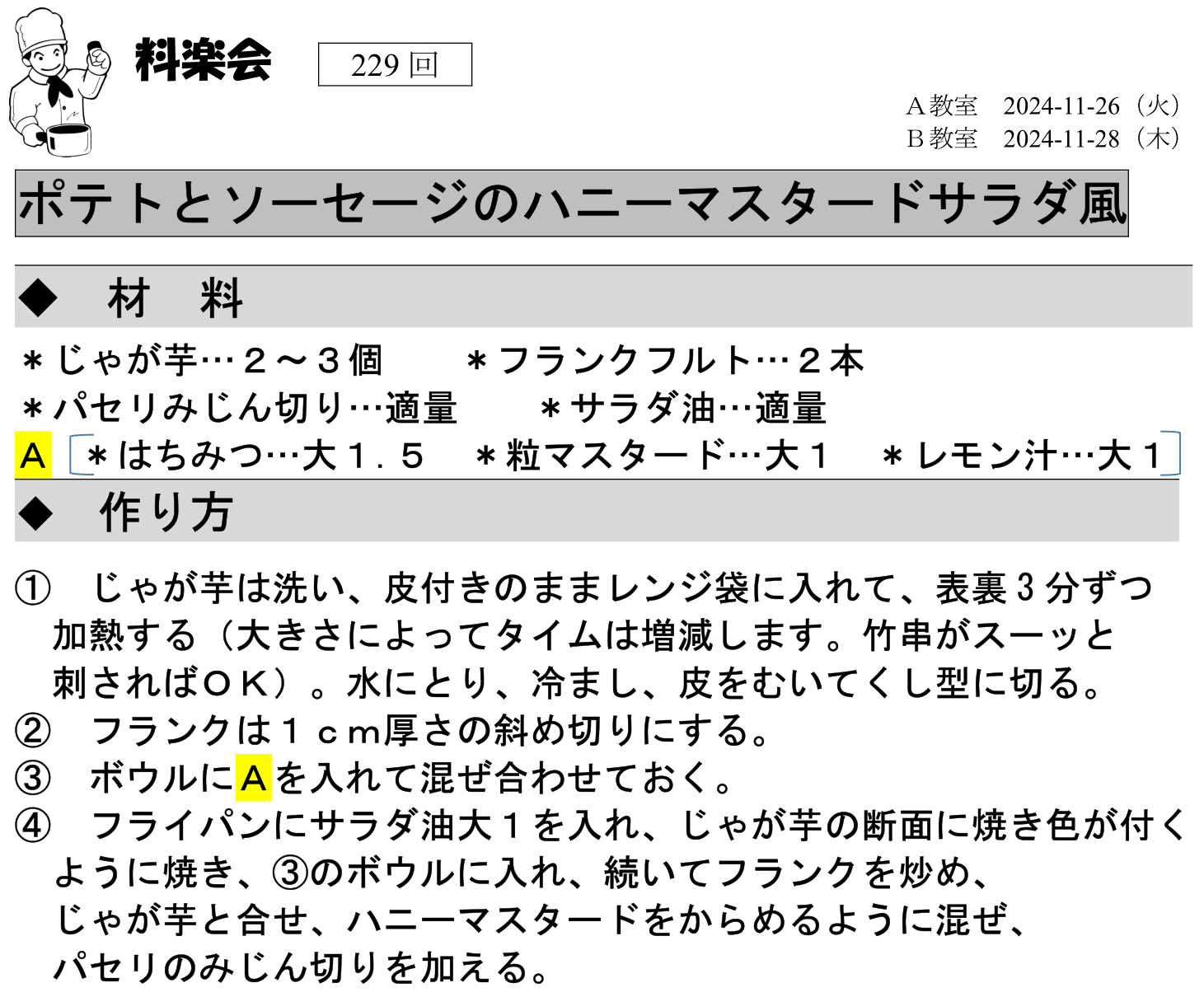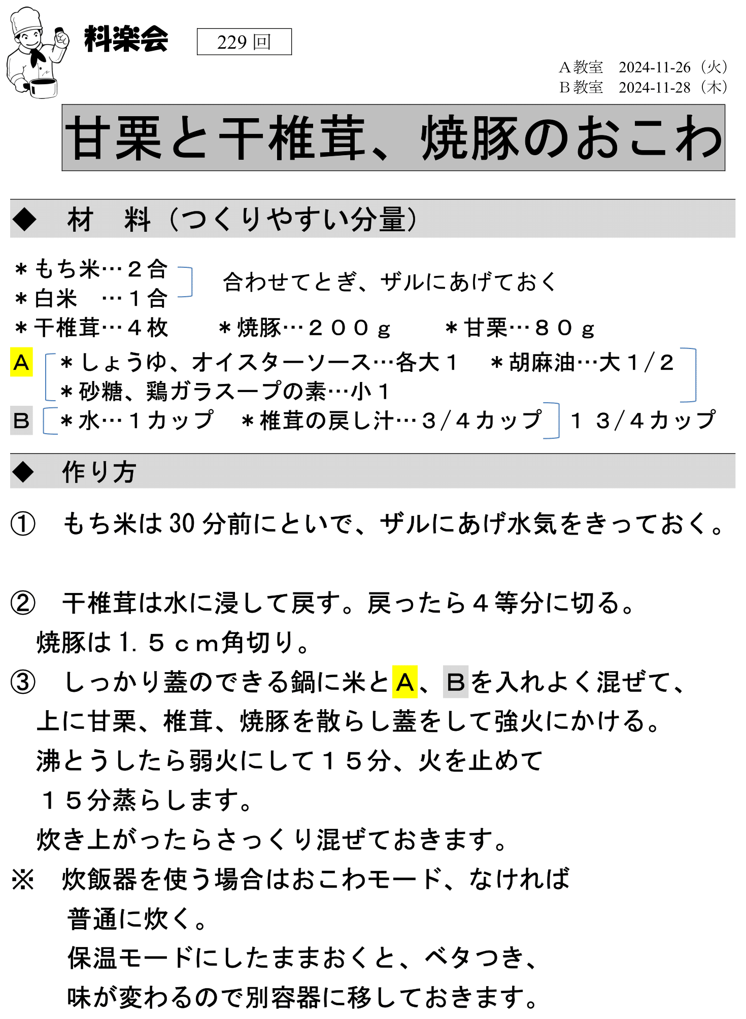 開催日は、月1回 A教室(第4火曜日) B教室(第4木曜日)です。