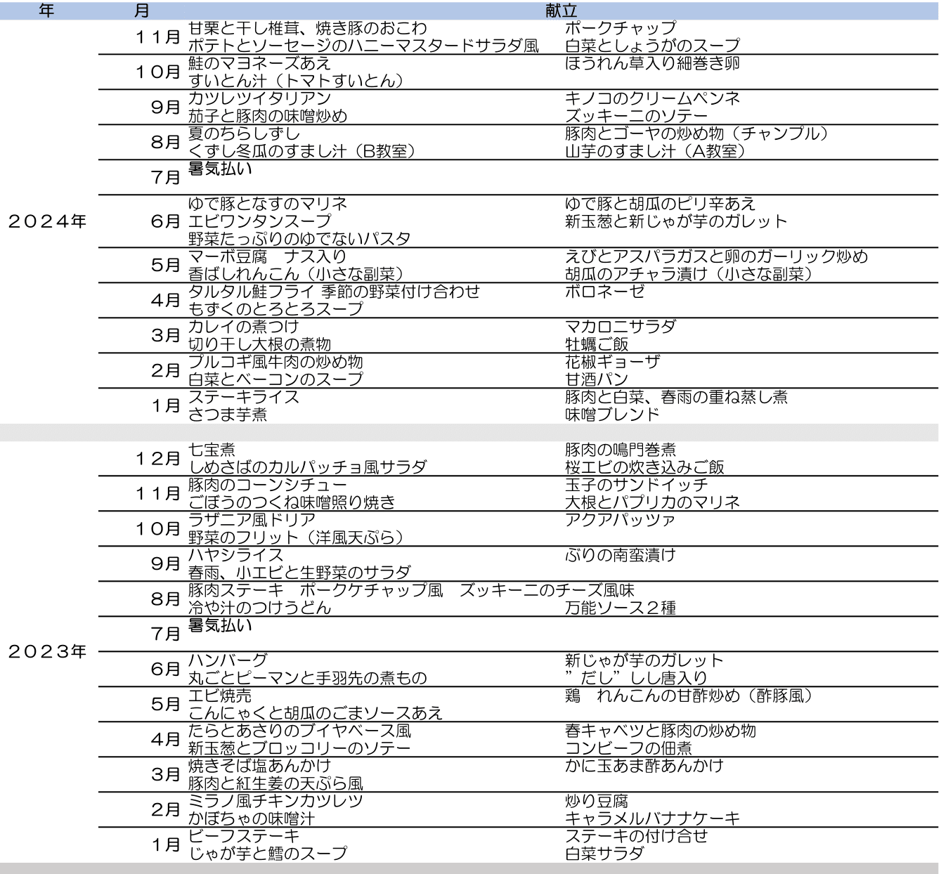 ☞料理リスト(3年以上前)リニューアルしました