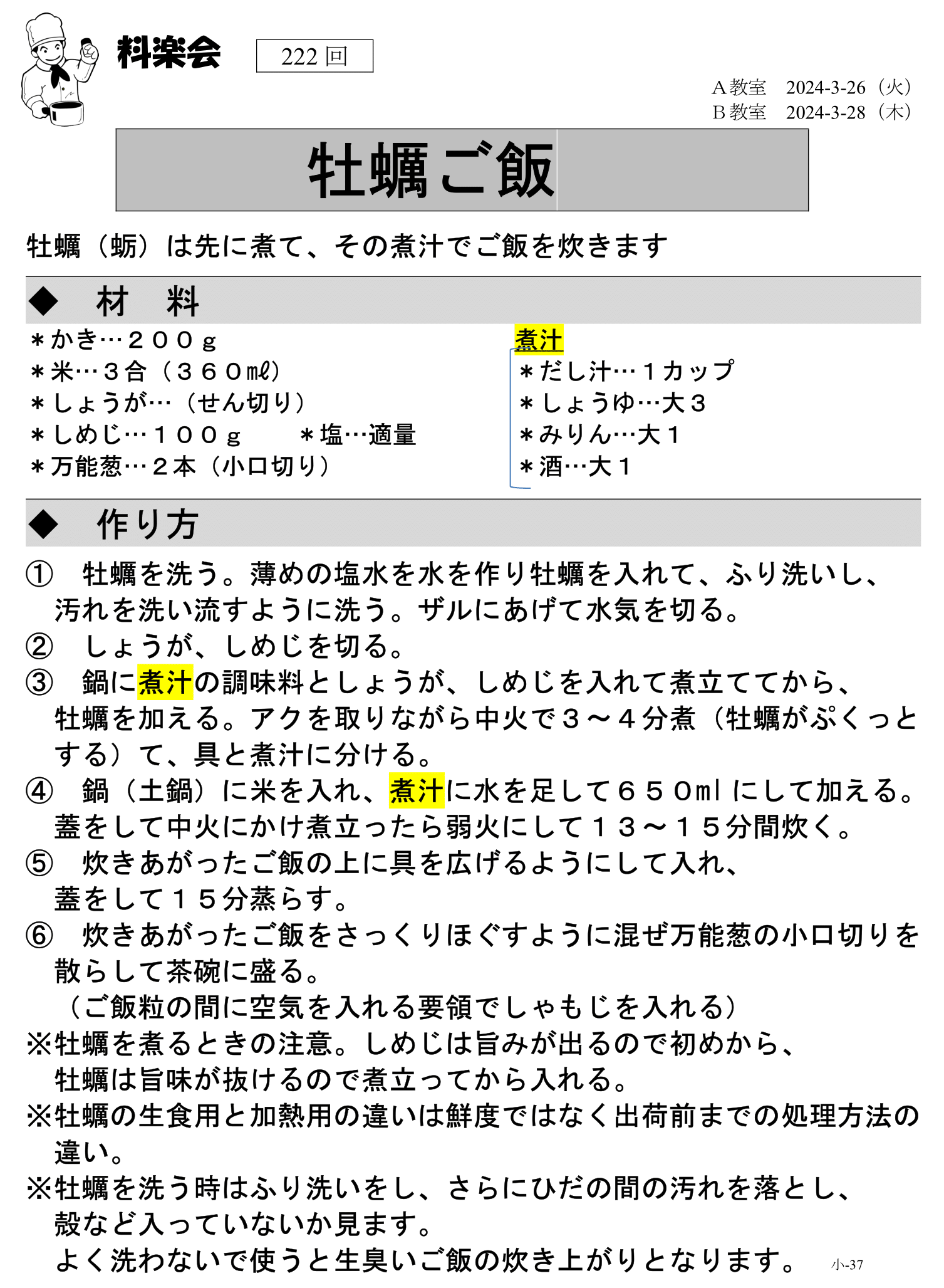 ・生姜は、臭み消し(牡蠣ご飯に使うのも同様)