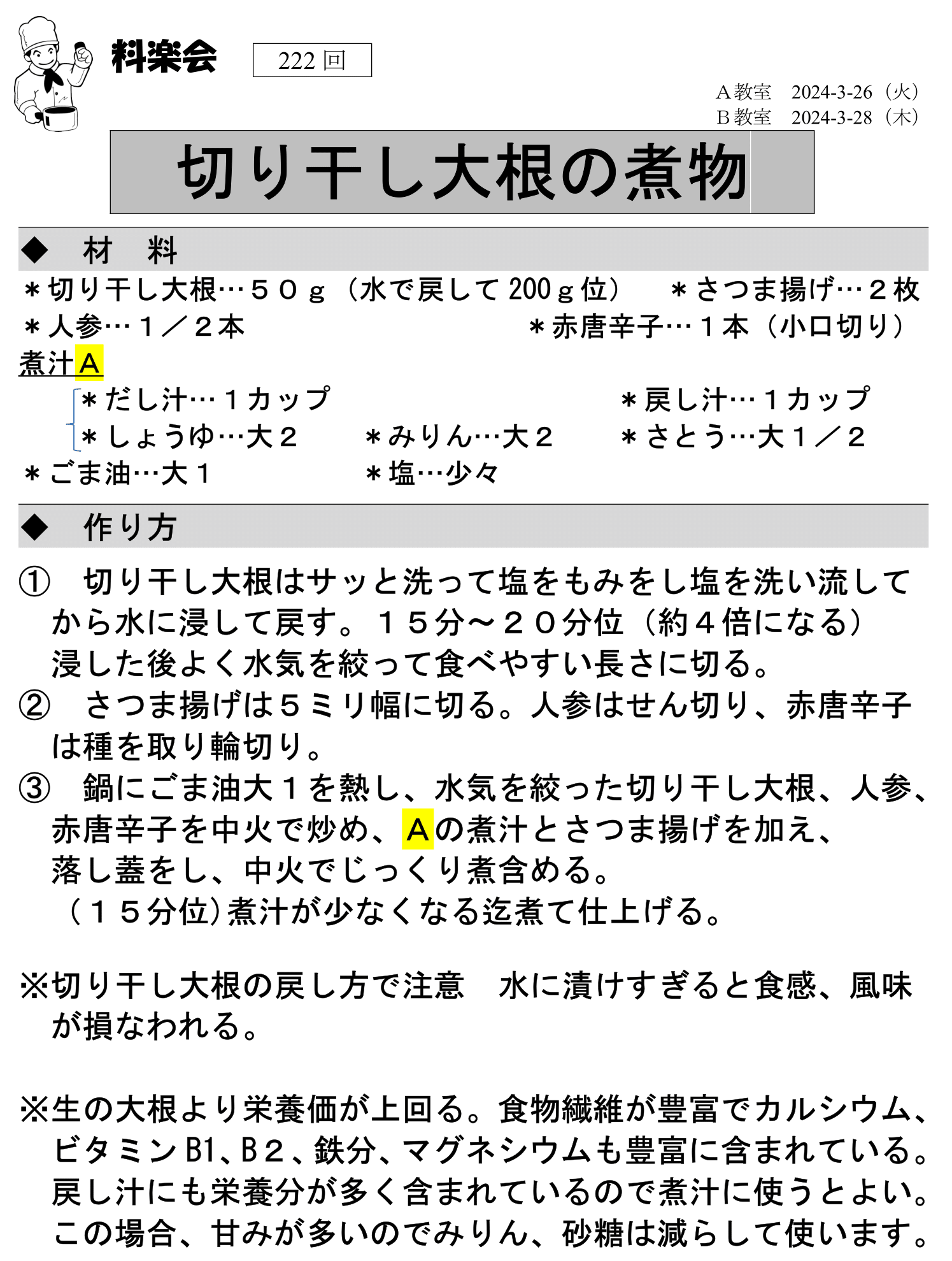 開催日は、月1回 A教室(第4火曜日) B教室(第4木曜日)です。