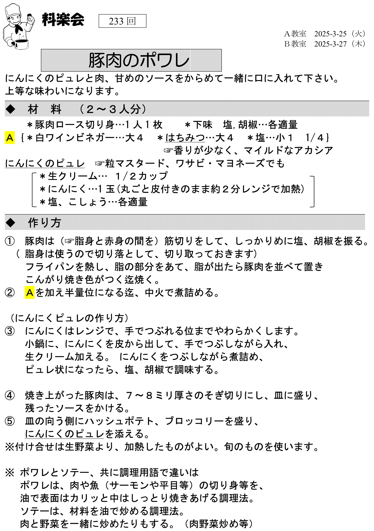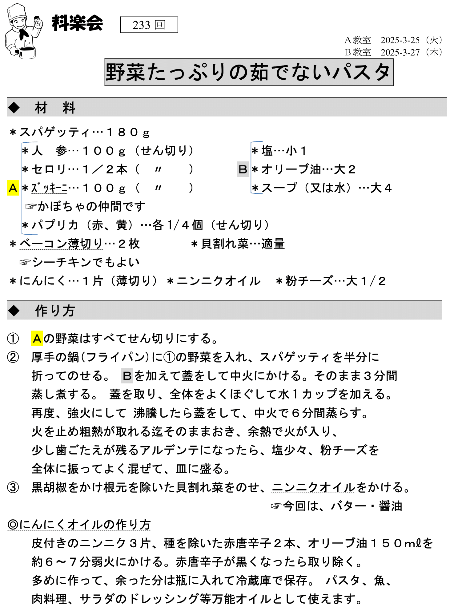 開催日は、月1回 A教室(第4火曜日) B教室(第4木曜日)です。