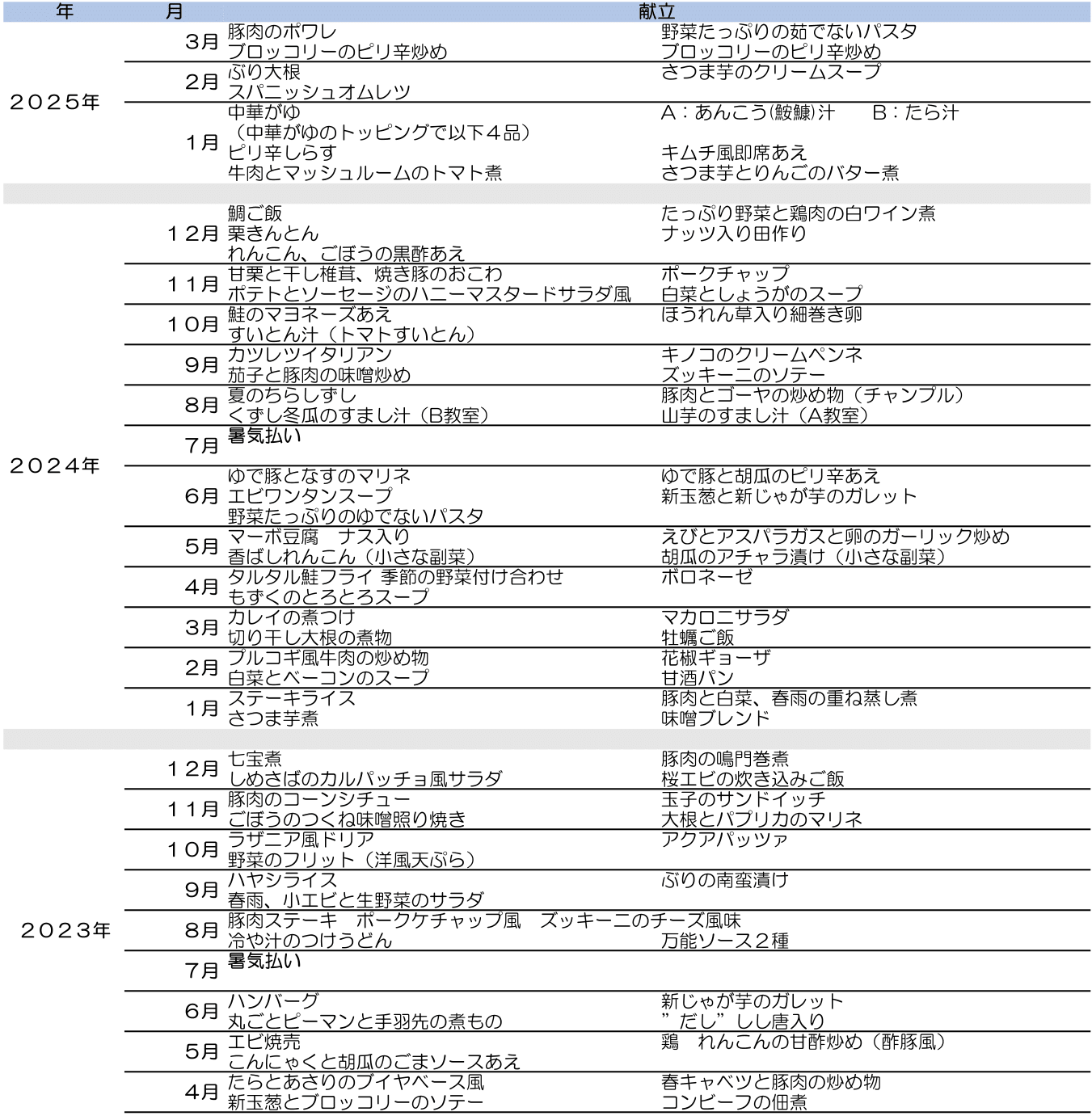 毎回、簡単な家庭料理(和、洋、中華、アラカルト)を3~4品程度作ります。