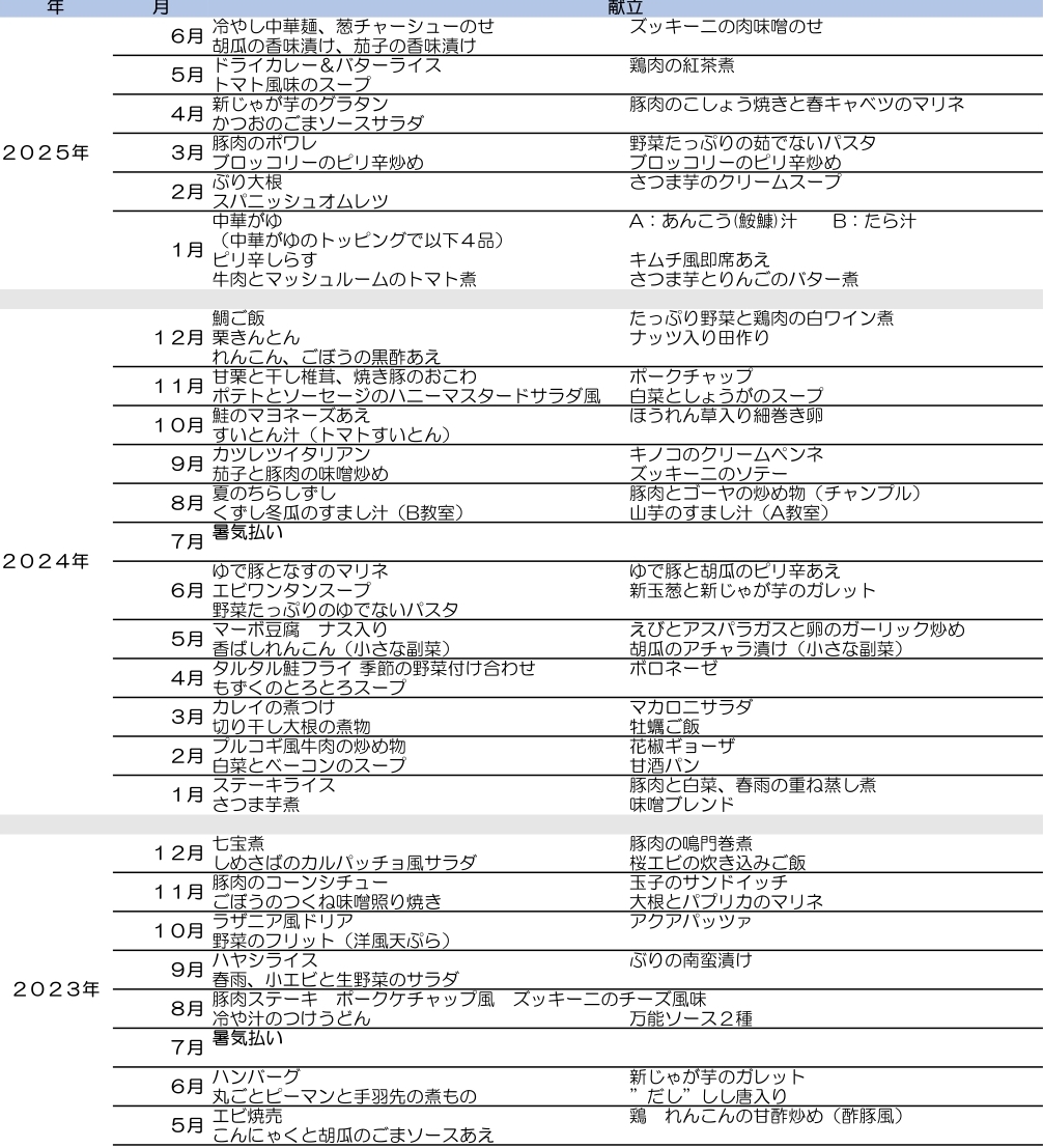 毎回、簡単な家庭料理(和、洋、中華、アラカルト)を3~4品程度作ります。