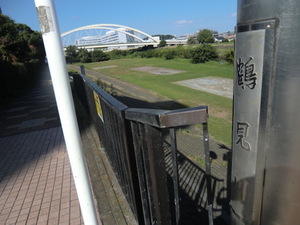 鴨居駅側から鴨池橋で鶴見川を渡ります。左前方には、佐江戸事業場。