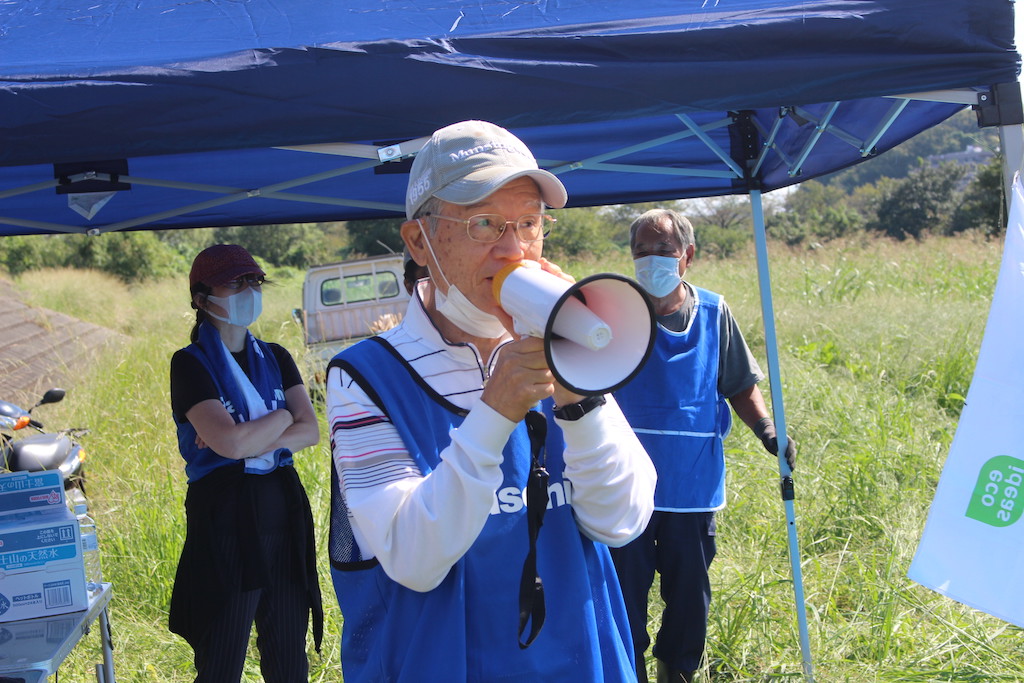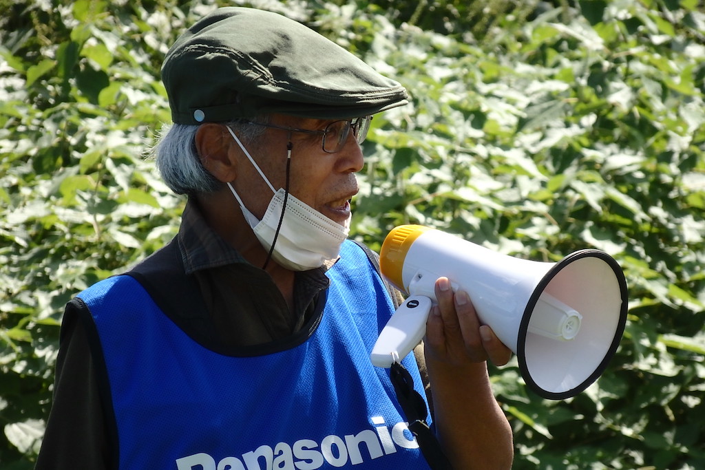 開会式では、本活動のリーダー小山さんの説明。早くも額に汗がにじみ始めます。