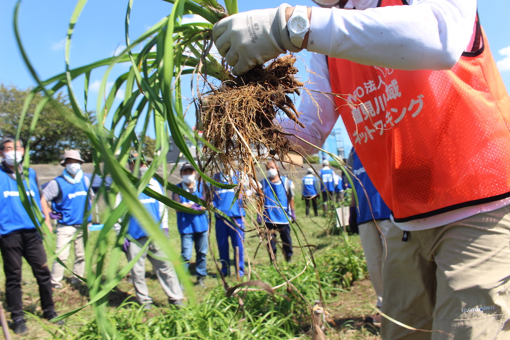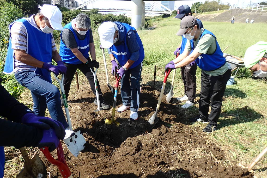 2022年10月1日(土)横浜市都筑区側の鶴見川河川敷において、「鶴見川 鴨居高水敷植生保全活動」を実施しました。この活動は鶴見川の自然回復を目指した「横浜治水事務所が進めている鶴見川植生保全活動」の趣旨に賛同し、NPO法人 鶴見川流域ネットワーキング(TRネット)と連携して2009年から行っているもので、今回は37回目となりました。