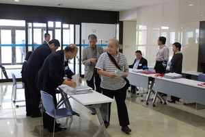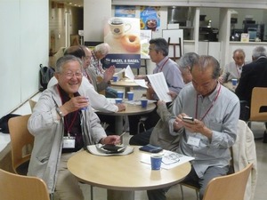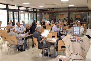厚生棟一階で受付、受付で会議資料を受け取り、コーヒー・コナーで会議資料に目を通す