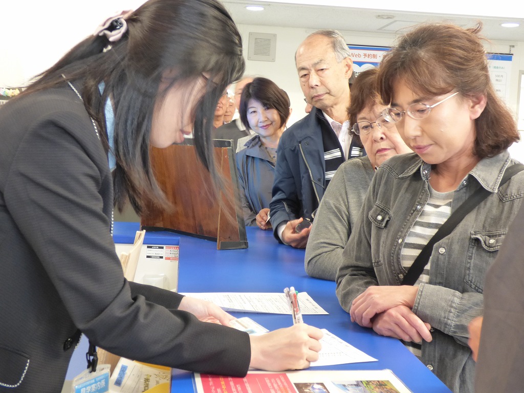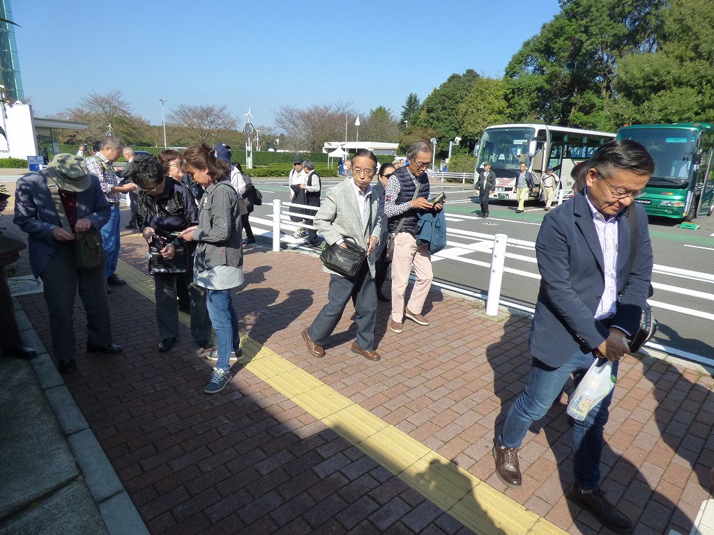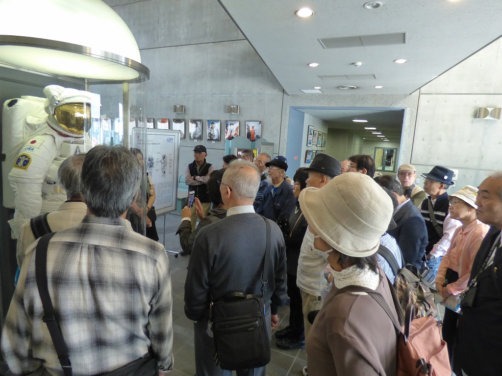 荒れた天候も一段落し、久々の秋晴れに恵まれた10月30日(水)、秋の社会見学会のバスツアーには50名が参加しました。車内ではあこがれの宇宙への夢を語りあいながら、JAXA(宇宙航空研究開発機構)「筑波宇宙センター」へ向かいました。