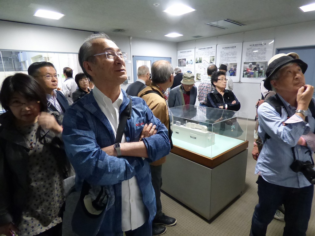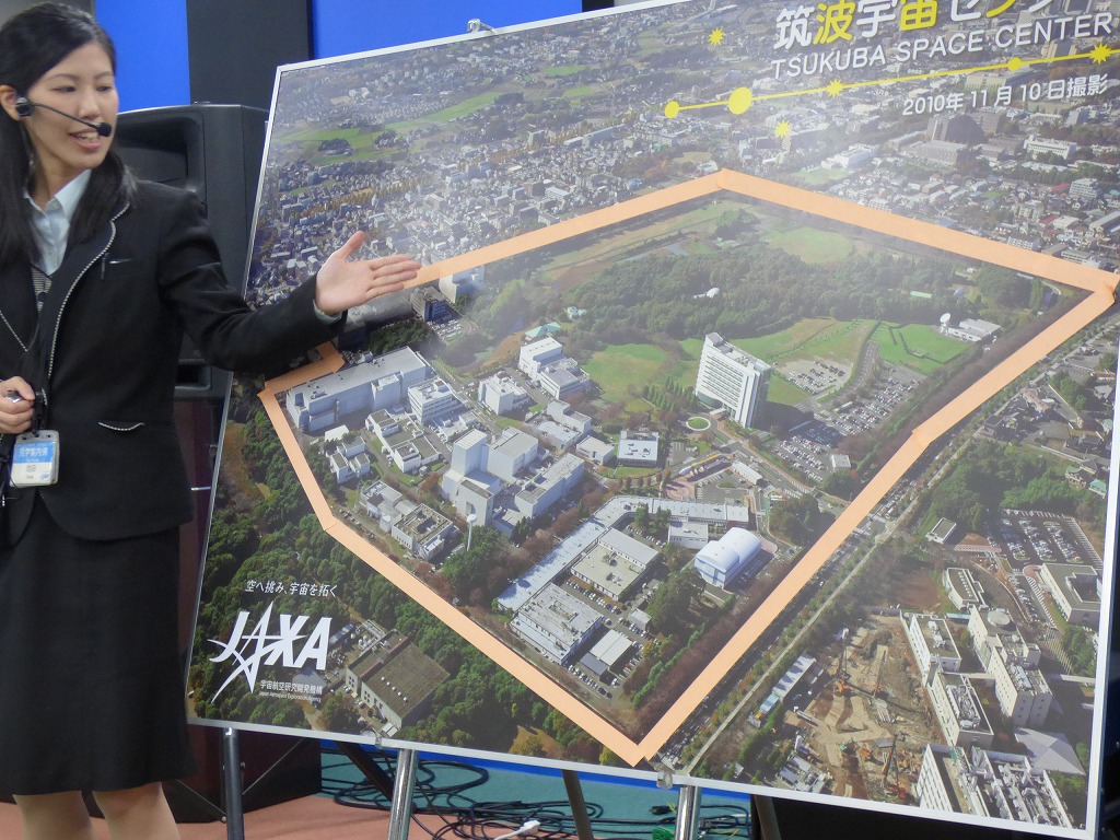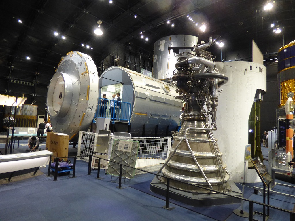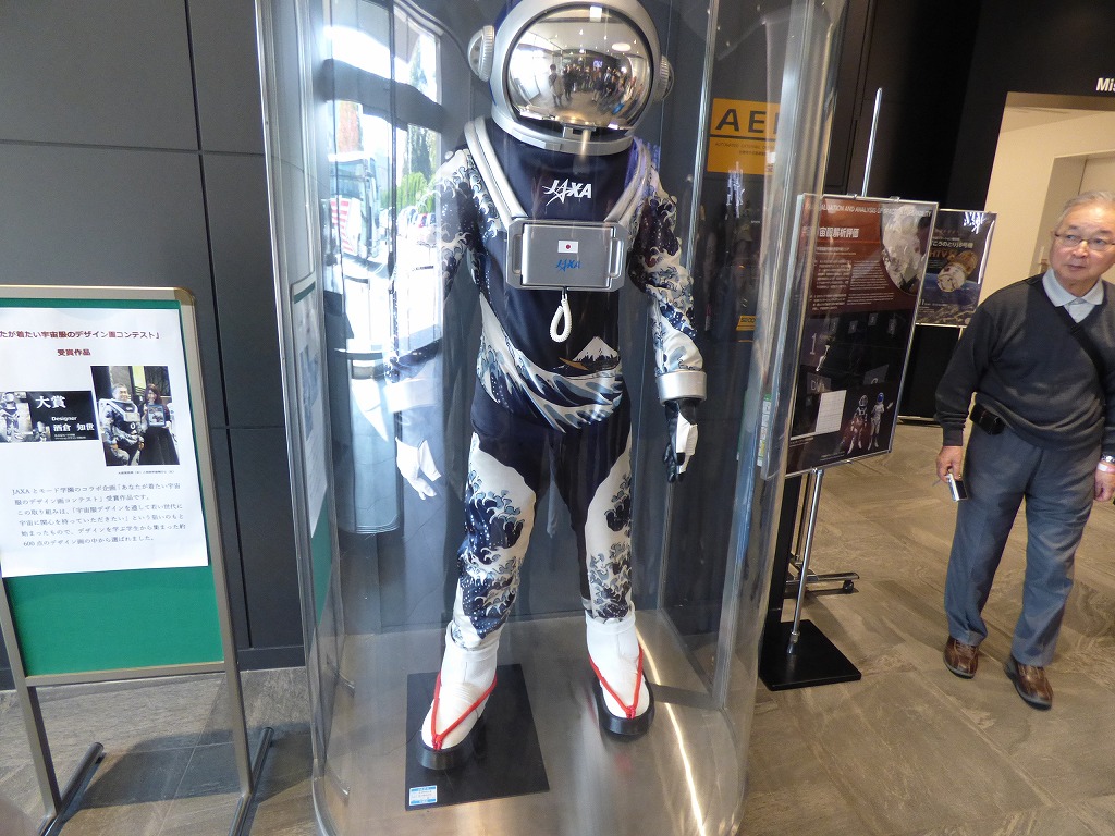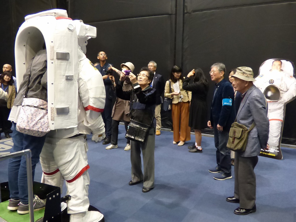 自由見学の展示館「スペースドーム」では、日本の宇宙開発の推進役であるJAXAの活動の歴史と現状についての展示を観て、触って確かめ、また国際宇宙ステーション(ISS)の日本実験棟「きぼう」の実物の内部を体感しました。