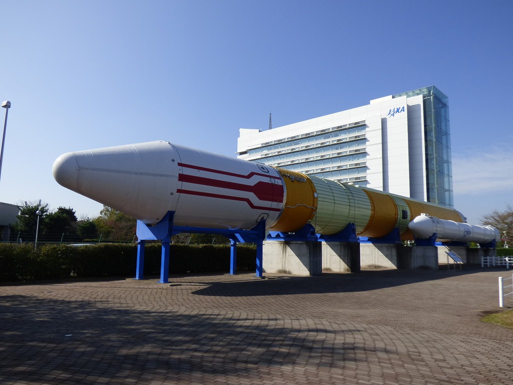 センターでは正門前で、最初に実物の「H-Ⅱロケット」の出迎えを受け、そのドデカさに感動しながら、見学へと進みました。