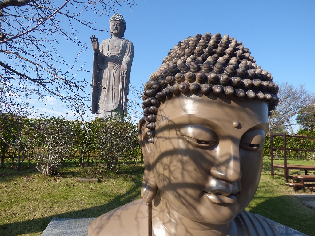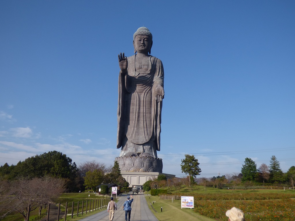 その後、バスでもう一つの見学先である牛久大仏に移動し、とにかく巨大な大仏様の姿にただただ感動しつつ周辺を散策しました。牛久大仏はお寺であり、人型建造物(通常のビルと同じ構造で青銅版(1.5m四方 厚さ6mm)を周りに溶接)であることなどを学び、新たな驚きと感動を想い出に帰路につきました。