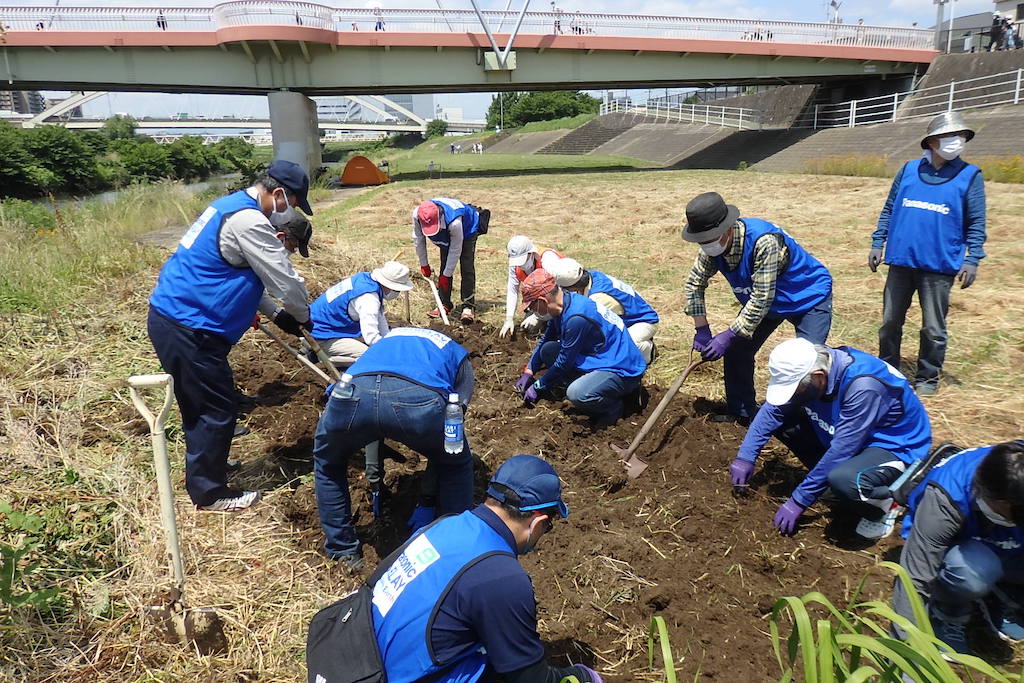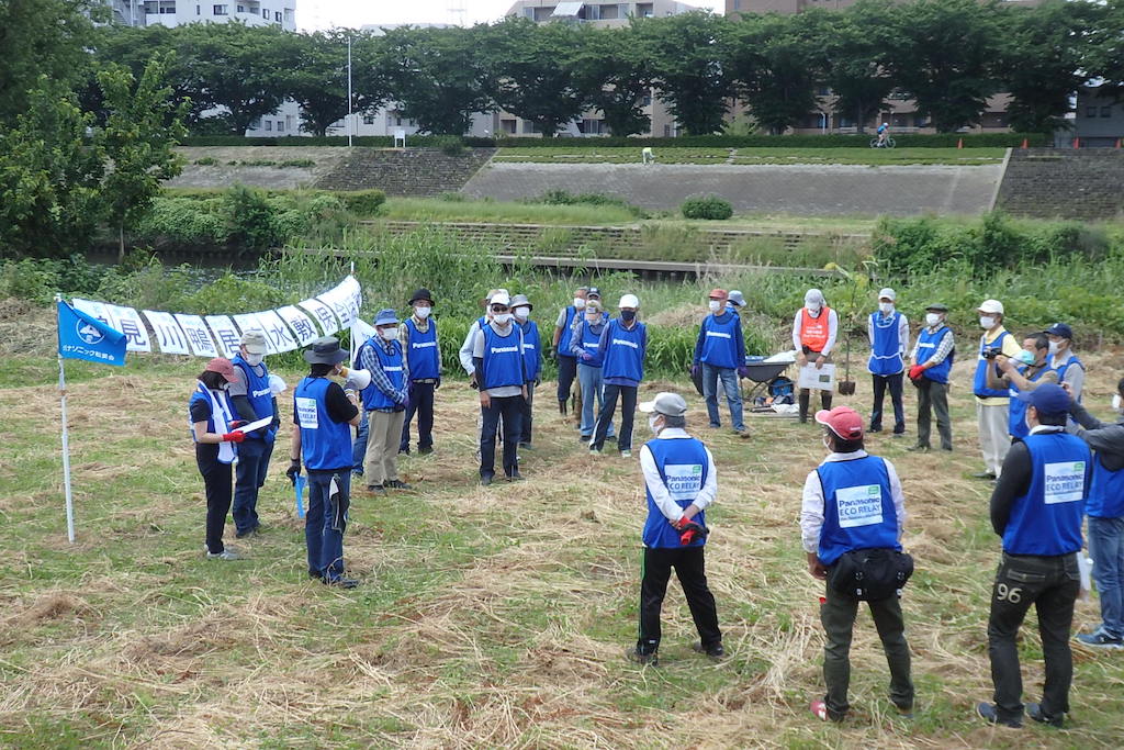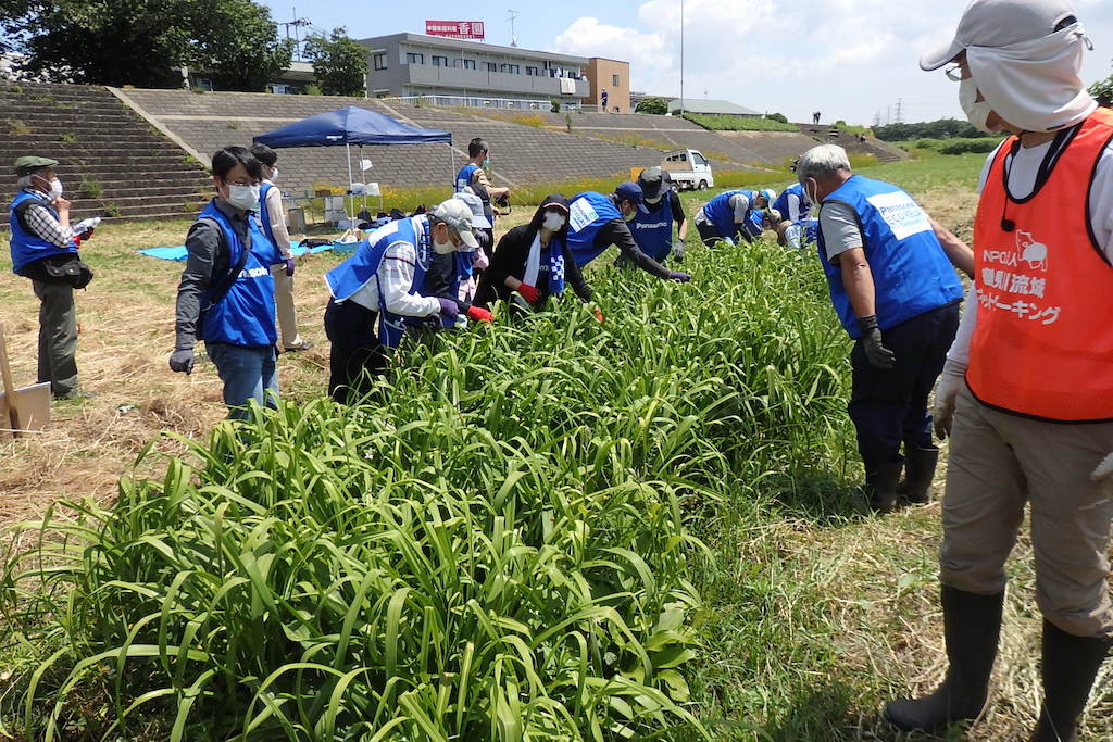 2022年6月4日(土)横浜市都筑区側の鶴見川河川敷において、「鶴見川 鴨居高水敷植生保全活動」を実施しました。この活動は鶴見川の自然回復を目指した「横浜治水事務所が進めている鶴見川植生保全活動」の趣旨に賛同し、NPO法人 鶴見川流域ネットワーキング(TRネット)と連携して2009年から行っているもので、今回は36回目となりました。