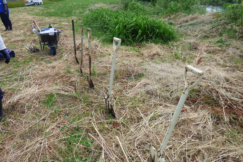 今回は、植え付けのための畝を作り、野萱草を株分けし、植え付けをおこない、花粉症等の有害な外来植物ネズミホソムギの除去も実施しました。