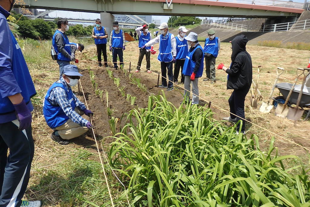 本活動の目的は、野萱草(のかんぞう)の育成を通して、河川敷の自然環境の改善することです。