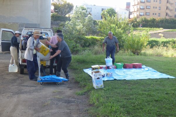 絶好の天気に恵まれた青空の鶴見川岸に、春に引き続いて有志のみなさんで集うことができました。今年は9月まで夏の気温が続き、10月になってやっと気温が下がり始め、さわやかや気候の中で開催となりました。
