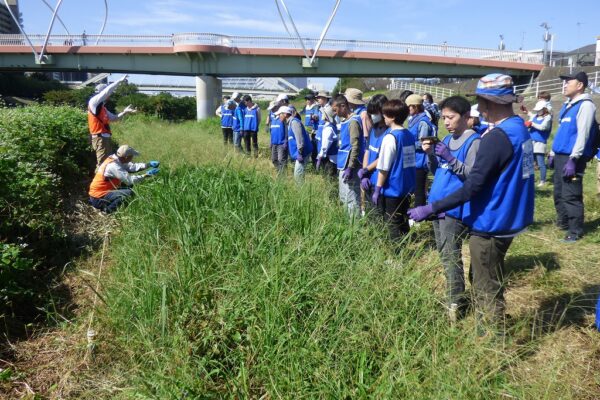 2023年10月7日(土)横浜市都筑区側の鶴見川河川敷において、「鶴見川 鴨居高水敷植生保全活動」を実施しました。この活動は鶴見川の自然回復を目指した「横浜治水事務所が進めている鶴見川植生保全活動」の趣旨に賛同し、NPO法人 鶴見川流域ネットワーキング(TRネット)と連携して2009年から行っているもので、今回は39回目となりました。