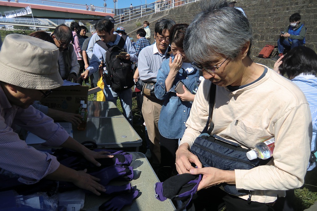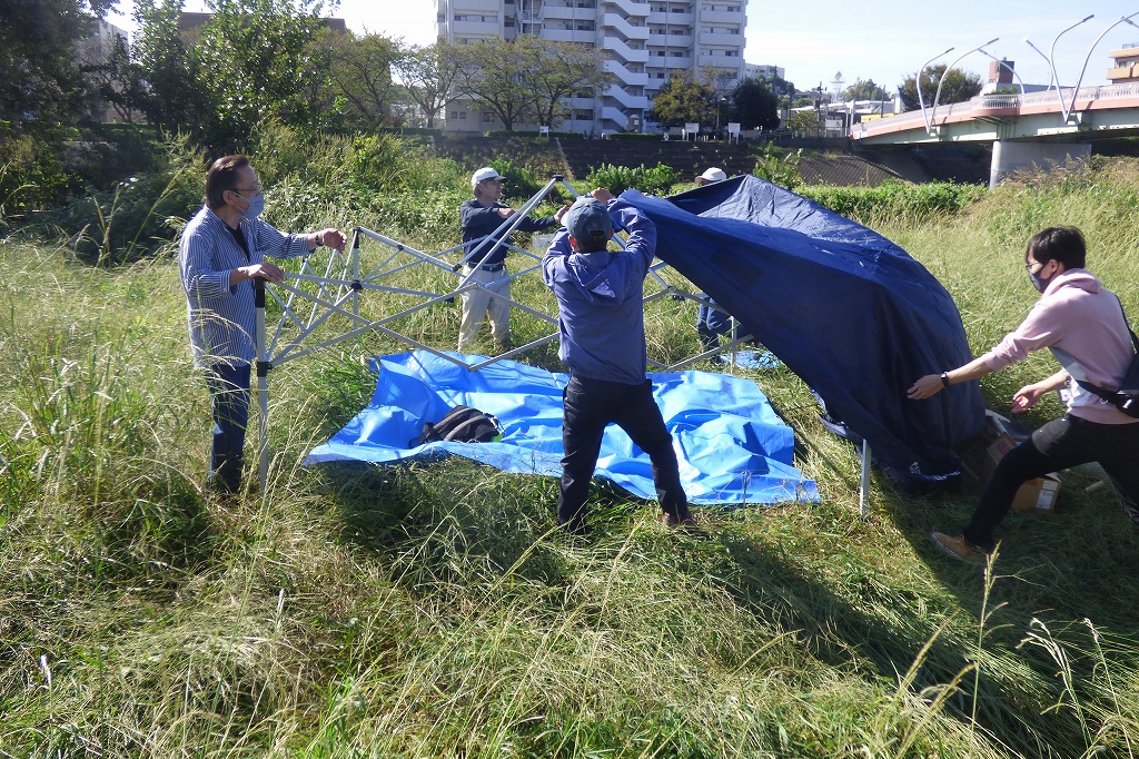 絶好の天気に恵まれた青空の鶴見川岸に、春に引き続いて有志のみなさんで集うことができました。今年は9月まで夏の気温が続き、10月になってやっと気温が下がり始め、さわやかや気候の中で開催となりました。