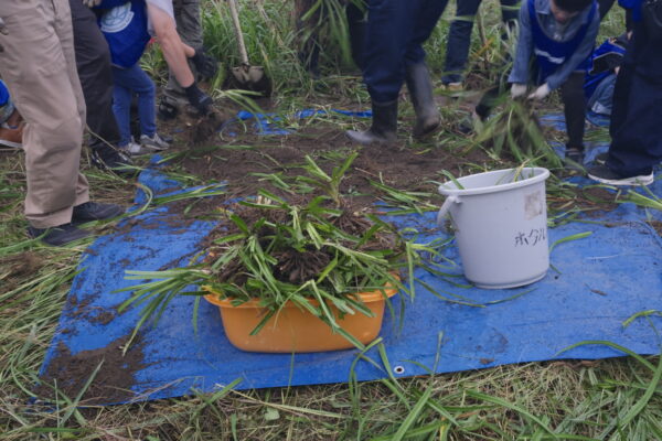 野萱草(のかんぞう)の株分け、畑つくり、植え付けを行いました。